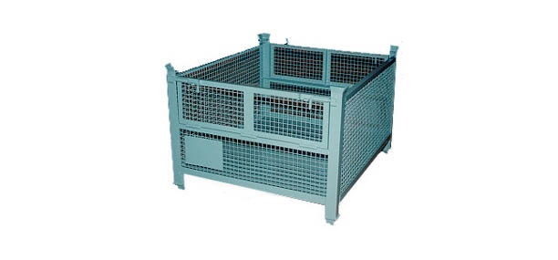 Caixa alimentadora empilhável para peças leves alta, estrutura em cantoneira, abas laterais bipartidas basculantes teladas,assoalho em chapa # 10 e fechamento em chapa # 14 ou tela malha 25x25. Capacidade 200 kg. Tara 68 kg. Dimensões: 889 x 1016 x 660 mm de altura.