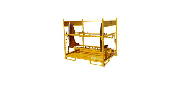 Estrutura tubular empilhável, para acondicionamento paralamas dianteiros, desenvolvido especialmente para cada modelo, para manuseio pela parte frontal do rack, sistema de travamento especifico.